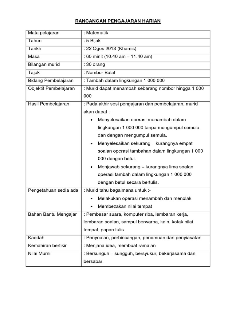 Rancangan Pengajaran Harian Pdf