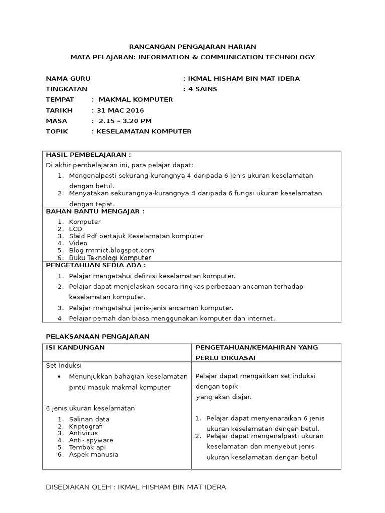 Rancangan Pengajaran Harian Computer Security Pdf