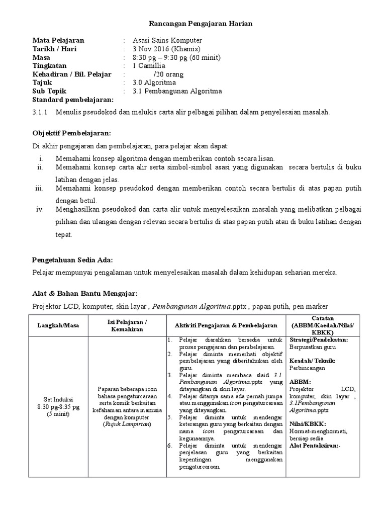 Rancangan Pengajaran Harian Sains Komputer Tingkatan 5